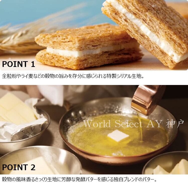 全粒粉やライ麦が香ばしい特製シリアル生地をシュガーバターでこんがり焼いてミルキー感が自慢のホワイトショコラをサンドしました。サクサク、ミルキーな味わいは、何度でも食べたくなるおいしさでずっと愛され続けています。