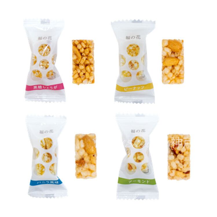 福の花(アーモンド・ピーナッツ・黒糖生姜・バニラ風味)×4個ずつ、ピーナッツそふと×24個