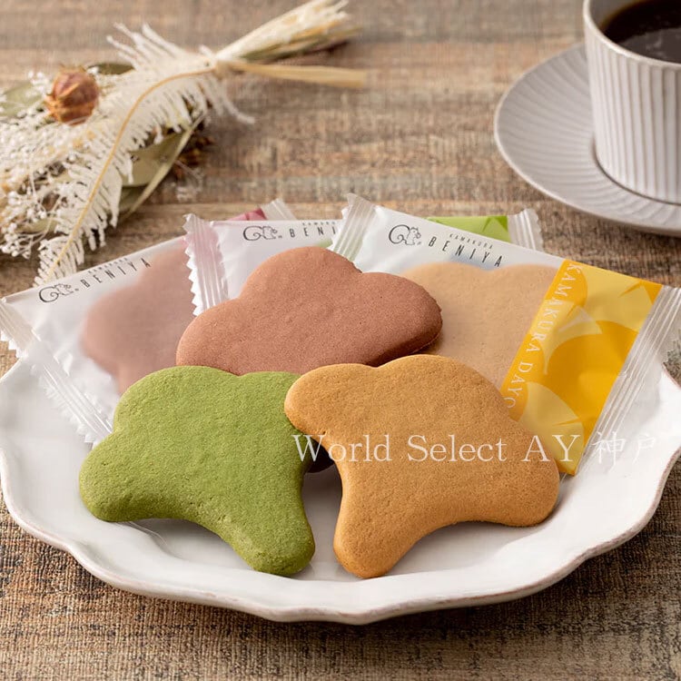 鎌倉紅谷創業時よりつくられてきたバターとはちみつベースの「プレーン」。鎌倉彫のカラーを十勝産あずきで表現した「あずき」。若葉青葉の銀杏を西尾の抹茶で表現した「抹茶」。