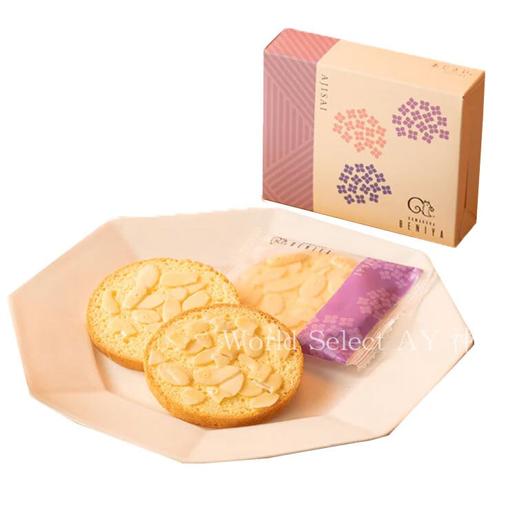 ちりばめたスライスアーモンドをあじさいの花びらに見立てた、鎌倉紅谷を代表する焼き菓子です。