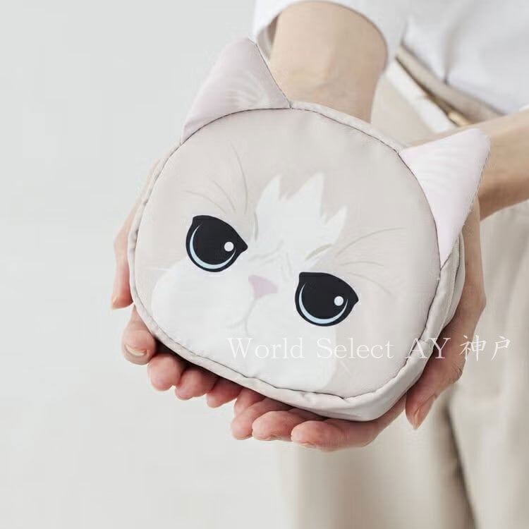 猫顔ポケットに本体を収納できるコンパクトバッグ。手のひらサイズにまとまります。