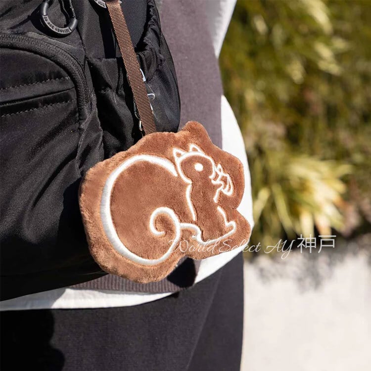 フワフワとした手触りが特長の“リスくんポーチ”の中に、
