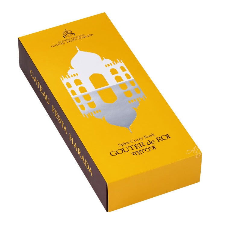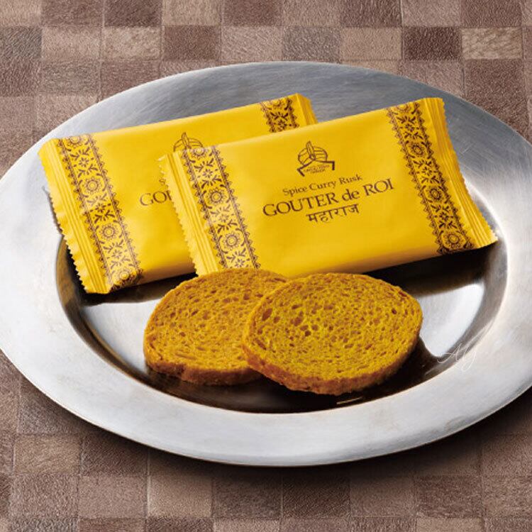 スパイスカリーラスク「グーテ・デ・ロワ マハラジャ」は、スパイスカリーを練り込み、旨味を閉じ込めたフランスパンを用います。その専用フランスパンをスライスし、バターをかけて焼き上げ、最後にオリジナルスパイスをふりかけてスパイスカリーラスクに仕上げました。スパイスカリーの持つ旨味と、様々な香辛料が織りなす香りをご堪能ください。
