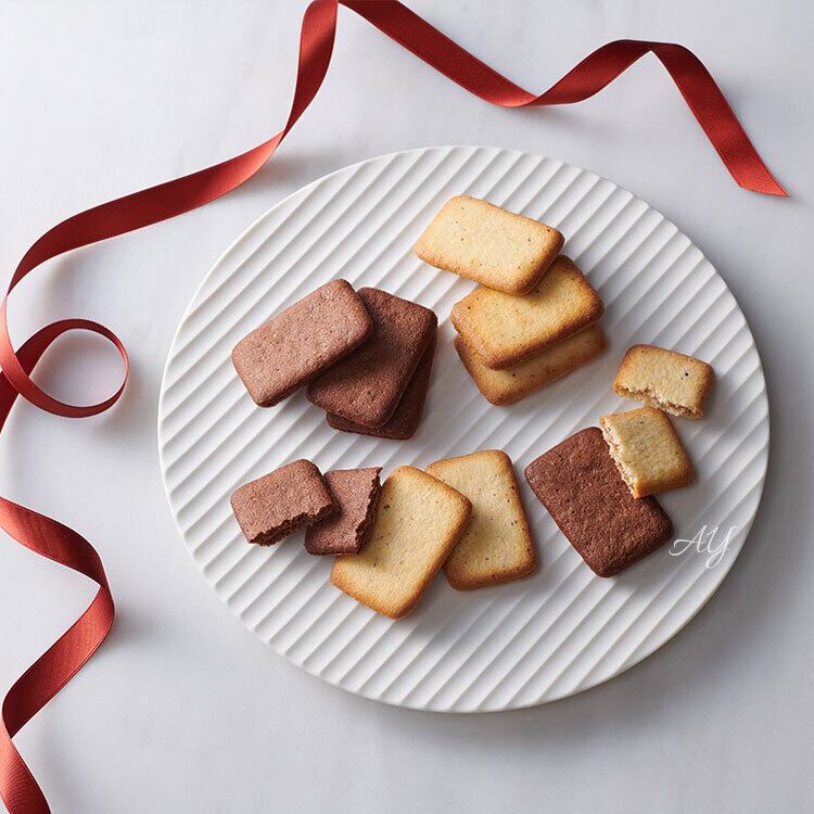 軽い食感に焼き上げたサブレにチョコレートをサンド。