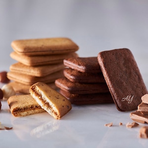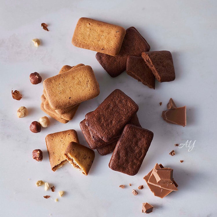 まろやかなミルクチョコレートと香ばしいヘーゼルナッツの美味しさをサクサクのサブレで挟んでとじ込め、気品ある味わいに仕上げました。